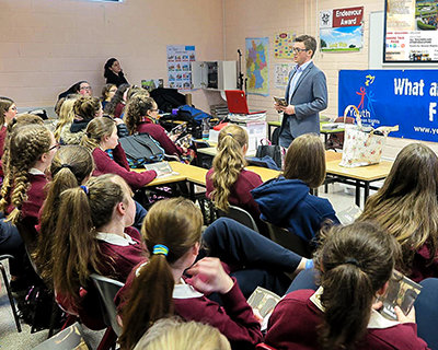 Le directeur des droits de l’homme entre en contact avec des étudiants d’une école catholique grâce aux kits pédagogiques des droits de l’homme.
