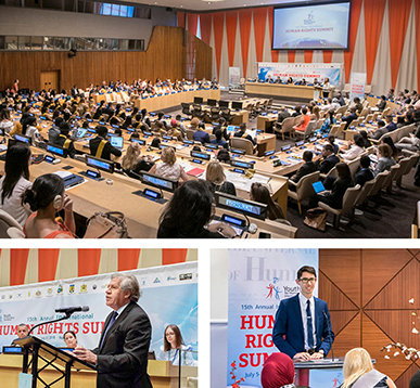Le 70e anniversaire de la Déclaration universelle des droits de l’Homme (DUDH) était le thème du 15e sommet international annuel des droits de l’Homme, qui a eu lieu du 5 au 7 juillet 2018. Les deux premiers jours du programme ont eu lieu à la chambre du Conseil économique et social, au siège des Nations Unies à New York, avec la séance d’ouverture diffusée en direct sur la chaîne de télévision des Nations Unies. Le sommet était parrainé par la Mission permanente du Costa Rica à l’ONU et